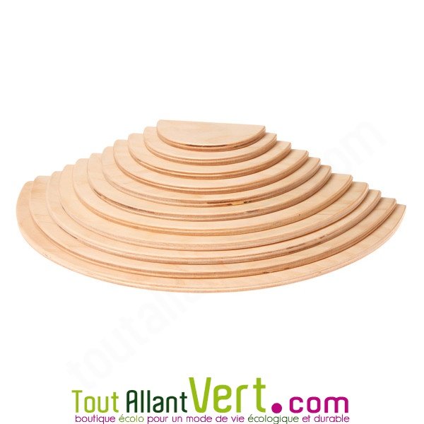 de Grimms11 demi-cercles en bois, couleur naturel. Finition à l'huile végétale, non toxique, il convient dès le plus jeune âge. Intemporel, il permet de construire à l'infini combiné à d'autres pièces et jeux. 37 cm de large pour le plus grand, 10 cm pour le plus petit. Fabriqué en Bosnie. Bois certifié (forêts gérées durablement).