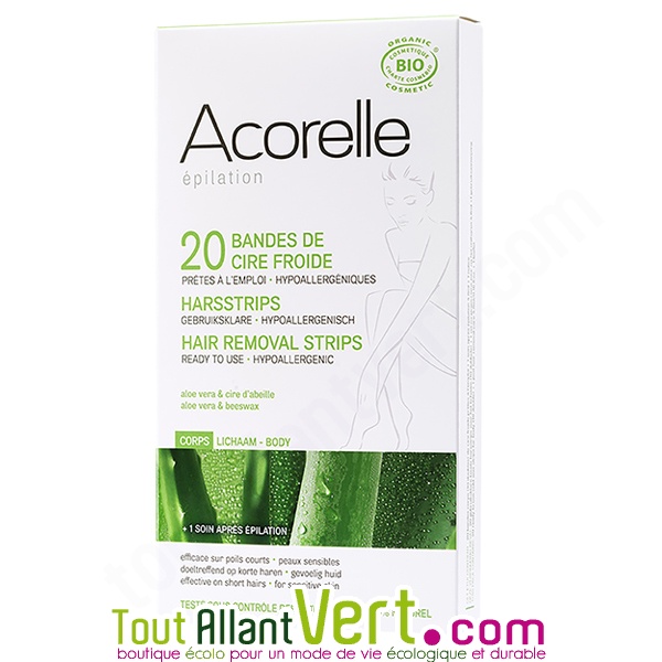 Prix de 20 bandes cire froide bio Corps prêt à l'emploi + 1 huile après épilation, Acorelle : 4.98€ au lieu de 9.95€ Remise de -50%Avis utilisateurs (4)