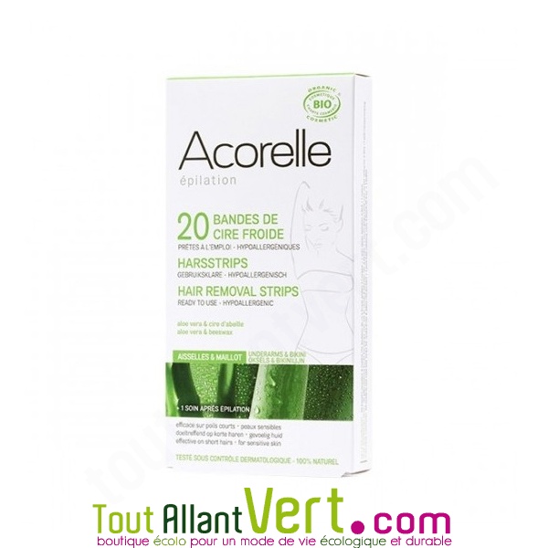 Efficaces (même sur poils courts) et pratiques, ces 20 bandes de cire froide sont certifiées cosmétique bio. Adoucit la peau. Pour aiselles et le maillot. Résultats durables jusqq'à 4 semaines. Marque Acorelle.