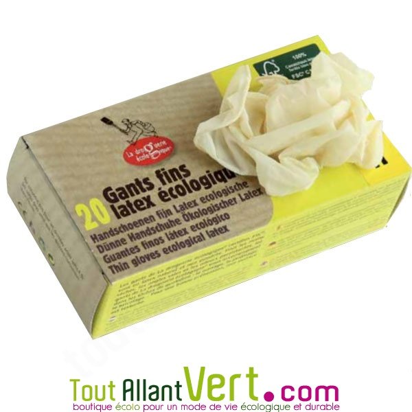 20 gants fins certifiés (forêt gérée durablement), taille S. A usage unique, en latex naturel et non poudrés. Boite distributrice pratique. Marque La droguerie écologique.Informations supplémentairesSUGGESTIONS DE PRODUITSDescription