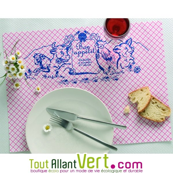 Cocobohème revisite les papiers d'emballage des bouchers charcutiers avec le set de table imprimé sur papier issu de forêts gérées durablement.- Bloc de 20 sets de table