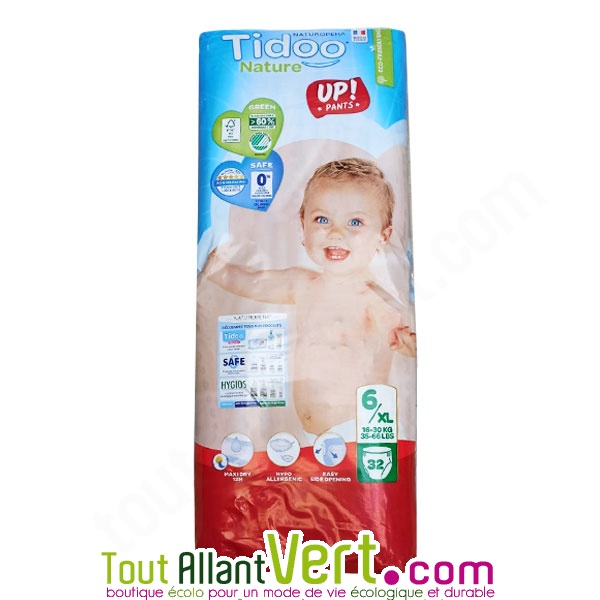 de TidooPour apprendre aux petits à être propre avant d'aller à l'école, ces 32 culottes d'apprentissage s'enfilent et s'enlèvent comme un slip. Jetables, hypoallergéniques, anti-fuites, écologiques et fabriquées en France, pour le bien-être de bébé et de ses fesses sensibles ! Marque Tidoo. Ces couches concilient sécurité pour bébé, tranquillité pour les parents et protection de la planète.