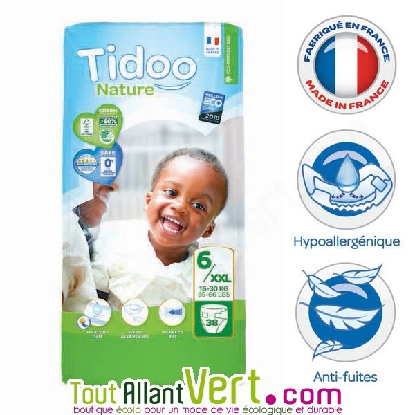 Prix de 38 couches jetables écologiques 16-30Kg XL de Tidoo : 11.94€ au lieu de 19.90€ Remise de -40%A propos du fabricant