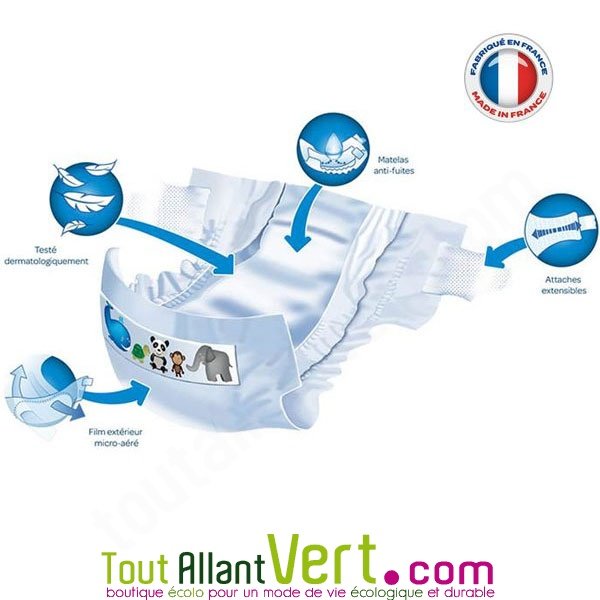 Les couches jetables Tidoo, en plus d'être écolo, présentent de nombreux avantages :- Anti-fuites avec son matelas ultra-absorbant