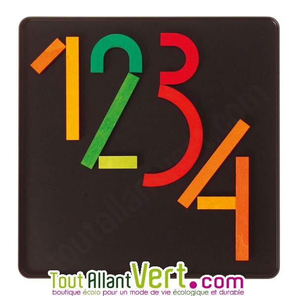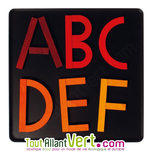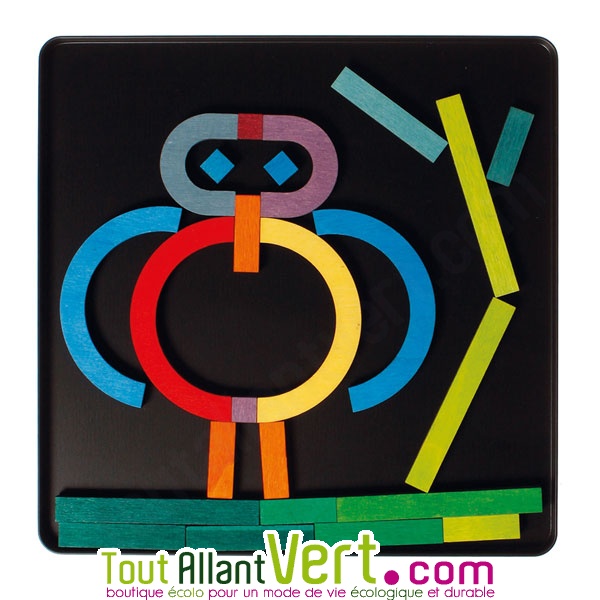 de GrimmsPuzzle magnétique de 77 pièces pour former des lettres, chiffres et faire des figures. Livrées dans leur boite métal. Pour apprendre et pour une imagination débordante, une créativité sans limite. Belles pièces en bois et belles couleurs. Fabriqué en Allemagne.
