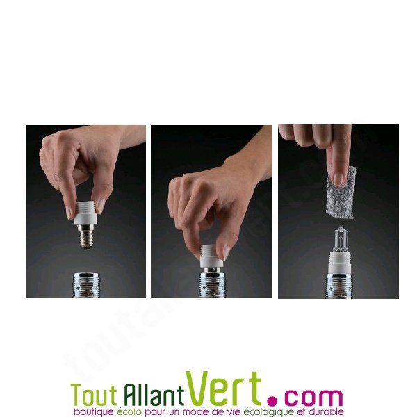 Adaptateur-douille E14 pour halogene G9La solution contre la pollution électromagnétique et lumineuse dégagées par les lampes fluocompactes, tout en conservant l'aspect basse consommation des ampoules.
