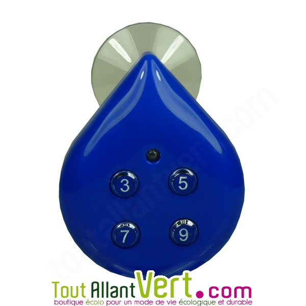 Ce chronomètre digital avec alarme a pour objet de sensibiliser à la réduction de la consommation d'eau et d'énergie (notamment via le temps passé sous la douche). Il vous permet soit de programmer un temps de douche à respecter et sonne une fois le temps écoulé.