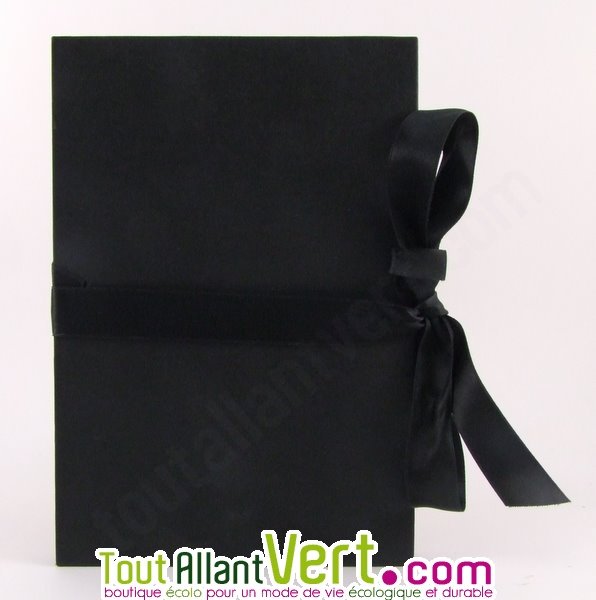 En carton recyclé robuste, cet album est recouvert d'un papier lin noir très élegant. A l'intérieur : carton photo recyclé noir, plié en zigzag, avec de la place pour 14 photos format 10 x 15 cm max. Fermeture avec un ruban de satin brillant noir, assorti à la couleur de l'album.