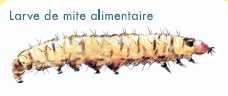 A quoi cela ressemble? Ce sont des larves voraces de la mite alimentaire (Plodia interpunctella) qui sont les parasites à proprement parler. On peut reconnaître l'adulte au dessin caractéristique de ses ailes antérieures (forme de papillon): une bande claire à la base de l'aile, séparée de la pointe sombre de celle-ci par un large trait brun cuivré. D'autres parasites comme ceux qu'on trouve dans la farine, les grains, les céréales et autres aliments sont moins courants dans les maisons.La larve des mites alimentaires: le vrai ennemi