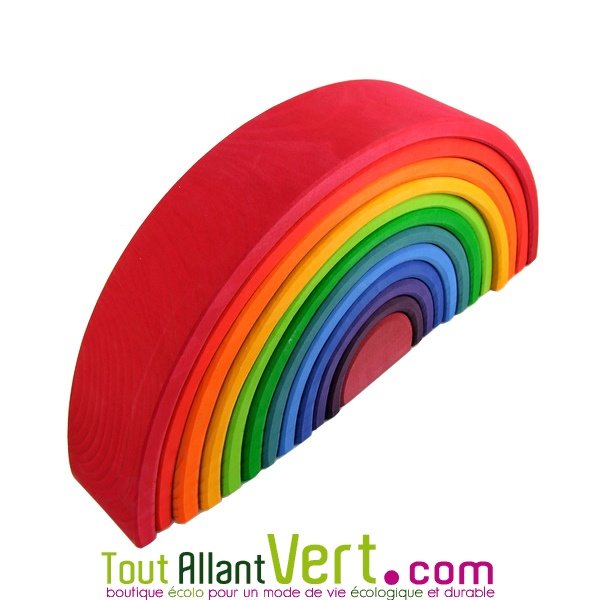 Cet arc-en-ciel en bois empilable vous paraît tout simple? Et bien, c'est le but de ce jouet. Composé de 12 pièces en bois, ce jouet laissera libre court à l'imagination de votre enfant. Conçu pour les tous-petits (premier age), ce jeu se transformera vite en pont pour les voitures, en maison pour les petits bonhommes. Ce jouet accompagnera votre enfant longtemps et sera redécouvert à chaque nouvelle utilisation.