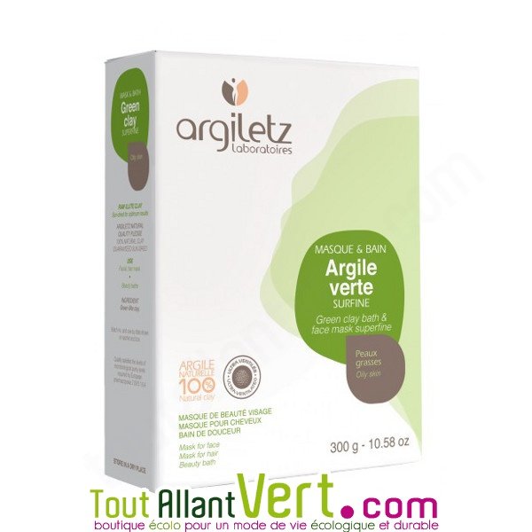 Prix de Argile verte bio pour masque et bain, peaux grasses, 300g, Argiletz : 5.20€Avis utilisateurs (3)
