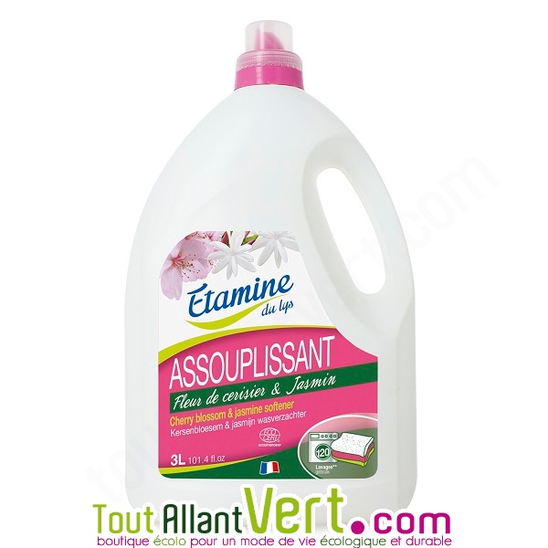 ★ ★ ★ ★ ★1 avis clientsCet adoucissant fleur de cerisier et jasmin adoucit le linge, le parfume naturellement et facilite son repassage. Il protège les fibres, redonne du gonflant et de la souplesse au textile tout en empêchant la formation d'électricité statique. Utilisable en machine et au sèche-linge. 3 Litres pour environ 120 lavages. Certifié écodétergeant par Ecocert. Marque Etamine du Lys, fabriquée en France.