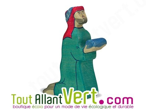 Balthasar est l'un des trois rois mages. Il s'intégrera parfaitement à votre crêche à Noël. A genou, il présente son offrande. Soigneusement dessiné et peint, ce personnage est surprenant de réalisme ! En bois, solide et durable, vous aurez plaisir à le retrouver chaque année au pied su sapin. Vous pouvez aussi bien en faire un jouet pour votre enfant tout au long de l'année et l'exposer pour les fêtes. Ce berger a une forme simple, ce qui permet aux enfants de développer leur imagination et de reproduire la réalité tout en s'amusant ! Les couleurs brillantes et attractives éveillent le désir des enfants d'explorer et de découvrir.... Un très bel objet à toucher, une sensation douce et agréable du bois pour les enfants et les adultes qui seront comblés.