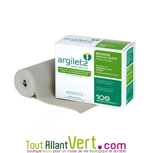 Ces bandes d'argile verte sont prêtes à l'emploi et sont vendues par 2. (5m x 8,5cm).L'argile verte, posée en cataplasme, soulage durablement les muscles fatigués ou endoloris.