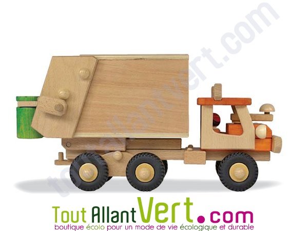 Le bois d'érable est connu pour sa solidité et sa longévité. Les contours de cette benne à ordure sont lisses ce qui en fait un jouet sûr pour toute la famille. La peinture est non toxique et à base d'eau. La couleur de la figurine est finie à l'aide d'une peinture satinée à base d'eau, ce qui permet aux plus petits d'entre nous de la mettre à la bouche sans risque d'imprégnation et de décoloration dû à la salive ou à la transpiration !