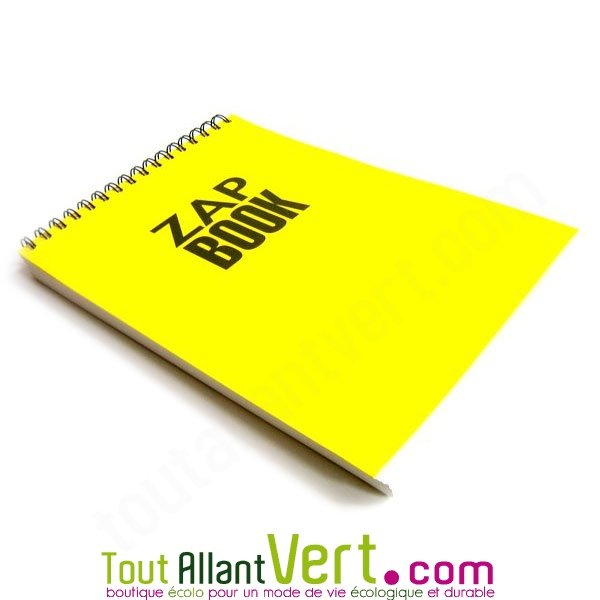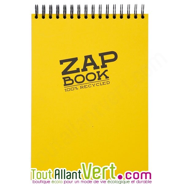 Bloc spirale à l'italienne uni recyclé A4 80g 320 pages Jaune série ZapBookUn bloc 100% recyclé pour des usages multiples. Libre à vous de l'utiliser selon votre utilité: numéros de téléphone, adresses, croquis, dessins, etc. En format économique (320 pages) avec couverture renforcée colorée. Jouez avec les couleurs! Le rouge pour le carnet intime, le rouge pour les numéros de téléphone, le vert pour les croquis ou le jaune pour l'école!