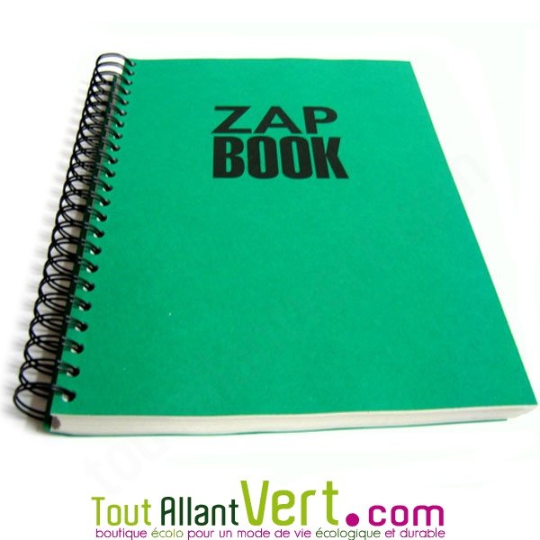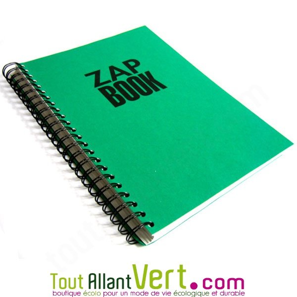 Bloc spirale à la française uni recyclé A4 80g 320 pages Vert ZapBook.Un bloc 100% recyclé pour des usages multiples. Libre à vous de l'utiliser selon votre utilité: numéros de téléphone, adresses, croquis, dessins, etc. En format économique (320 pages) avec couverture renforcée colorée. Jouez avec les couleurs! Le rouge pour le carnet intime, le rouge pour les numéros de téléphone, le vert pour les croquis ou le jaune pour l'école!