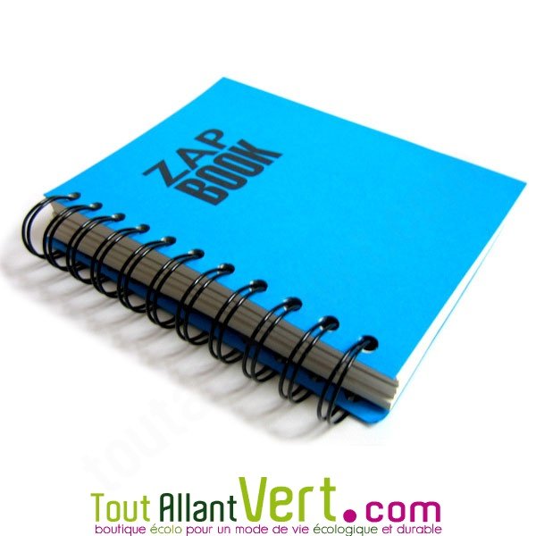 Bloc spirale à la française uni recyclé A6 80g 320 pages Bleu ZapBook.Un bloc 100% recyclé pour des usages multiples. Libre à vous de l'utiliser selon votre utilité: numéros de téléphone, adresses, croquis, dessins, etc. En format économique (320 pages) avec couverture renforcée colorée. Jouez avec les couleurs! Le rouge pour le carnet intime, le rouge pour les numéros de téléphone, le vert pour les croquis ou le jaune pour l'école!