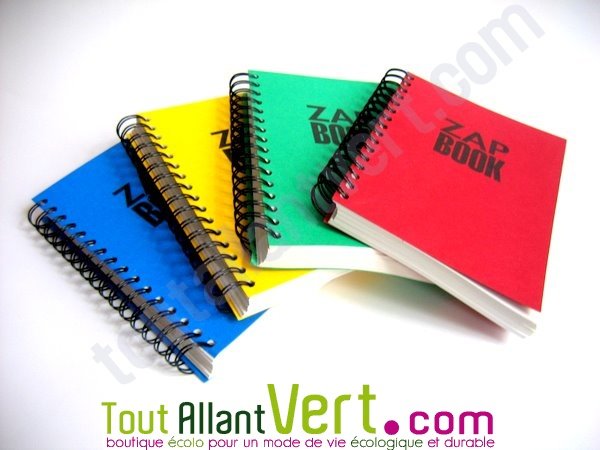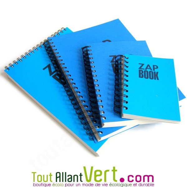 La collection ZapBook vous permet d'avoir des blocs de toutes les couleurs et de toutes les tailles. Les ZapBook sont disponibles au format A4 (21x29.7cm), approx. A5 (14.8x21cm), approx. A6 (11x15cm) en coloris bleu, jaune, vert, rouge, en bloc uni encollé sans spirales, avec spirales à la française ou spirales à l'italienne. Ses usages sont multiples.
