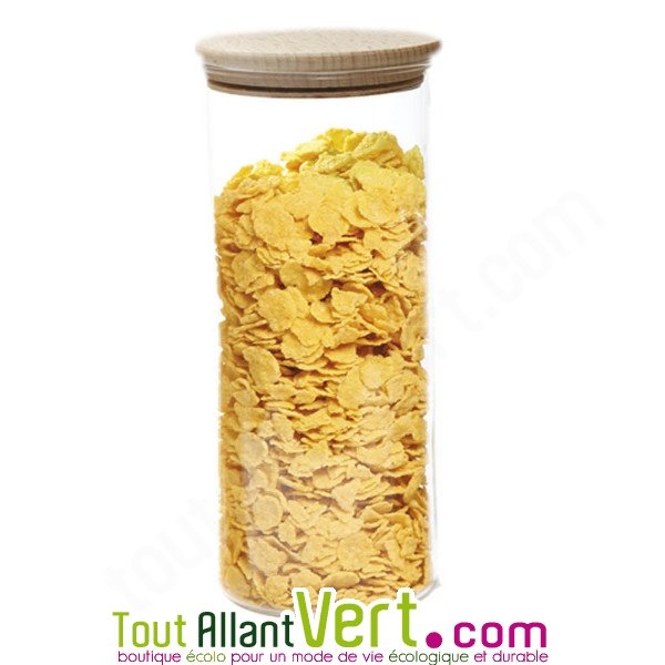 Bocal verre 1,4L couvercle hermétique en bois de hêtre, conservation alimentaire