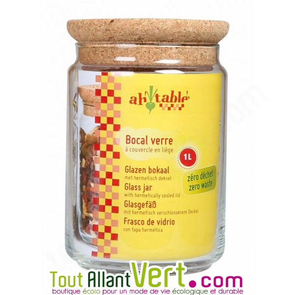 Bocal en verre borosilicate (fin, robuste et léger) avec couvercle hermétique en liège.- Couvercle hermétique pour une bonne conservation alimentaire