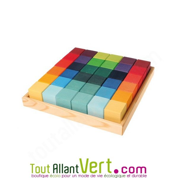 Boite de cubes en bois arc-en-ciel, 36 pièces, 3 +