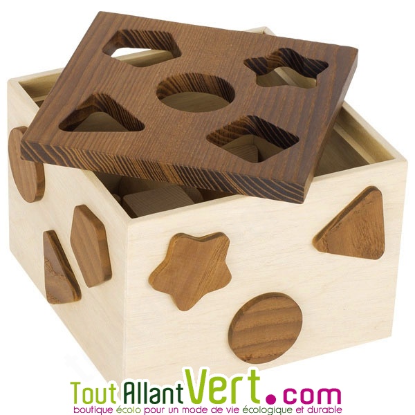 Boite à formes en bois naturel et ses 5 pièces, 16 cm