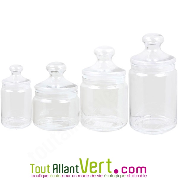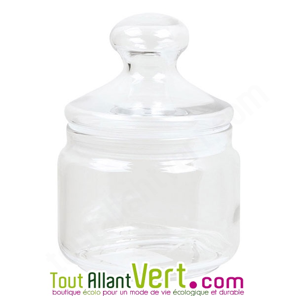 Ce pot en verre rappelle la bonbonnière traditionnelle. Couvercle en verre avec joint assurant une étanchéité parfaite. Idéal en conservation alimentaire, dans la salle de bain ou pour tous les petits objets à conserver. Certificat alimentaire, passe au lave vaisselle (sans le couvercle). 4 tailles au choix: 0,28L - 0,5L - 0,75L ou 1 litre. Fabrication Française.