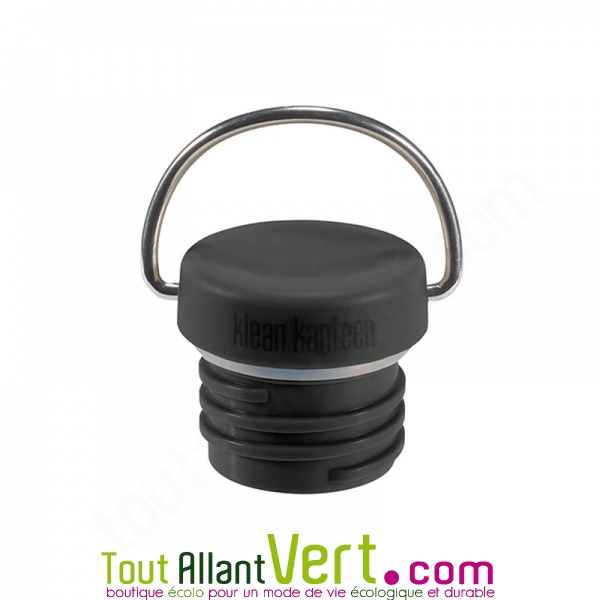 Bouchon noir pour gourdes adultes Klean Kanteen avec boucle de transport. Etanche. Convient aux gourdes de type classique.