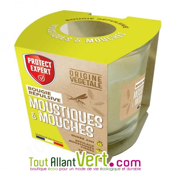 Bougie répulsive moustiques et mouches au géraniol, 20h d'utilisation, origine végétale