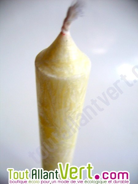 voir les questions/réponses sur ce produitBougie stéarine végétale ivoire.Bougie effet marbré ivoire à la stéarine uniquement végétale (palme bio certifié et coco).