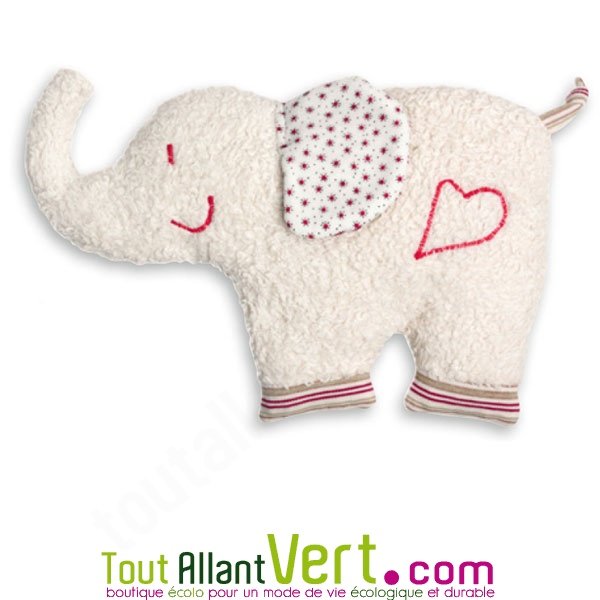 Cet éléphant est une longue bouillotte garnie de noyaux de cerise.Très doux, il est en coton peluche biologique. Ses grandes oreilles colorées, sa trompe et ses sabots rayés donnent envie de le toucher à tout instant ! Il deviendra vite le compagnon de votre enfant.