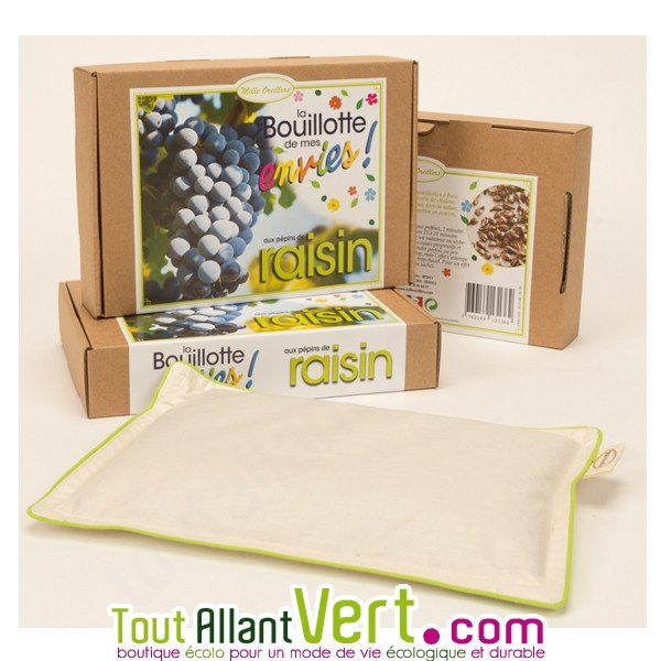 Garnie de pépins de raisin, cette bouillotte en coton biologique procure une fraîcheur ou une chaleur apaisante et anti-douleur pour tout le corps. Elle se réchauffe au micro-ondes, au four ou sur un radiateur. 18x25cm. Fabriquée en France.