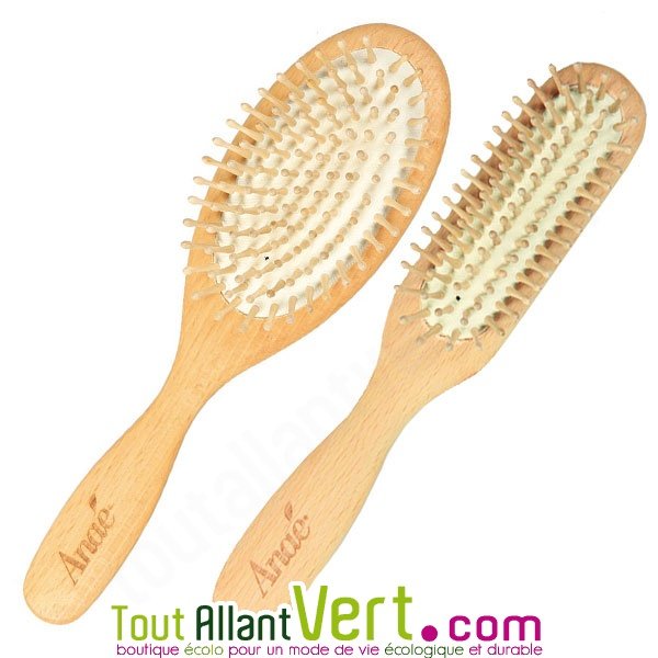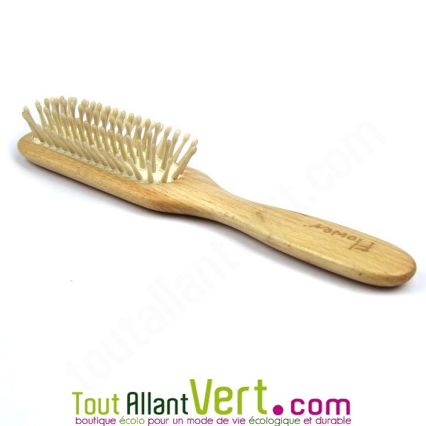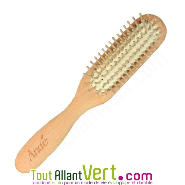 Brosse cheveux en bois, picots en bois.- Brosse idéale pour les cheveux raides ou lisses