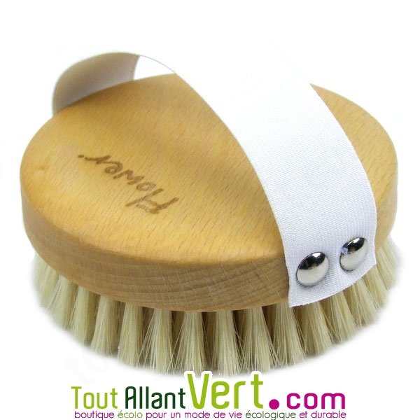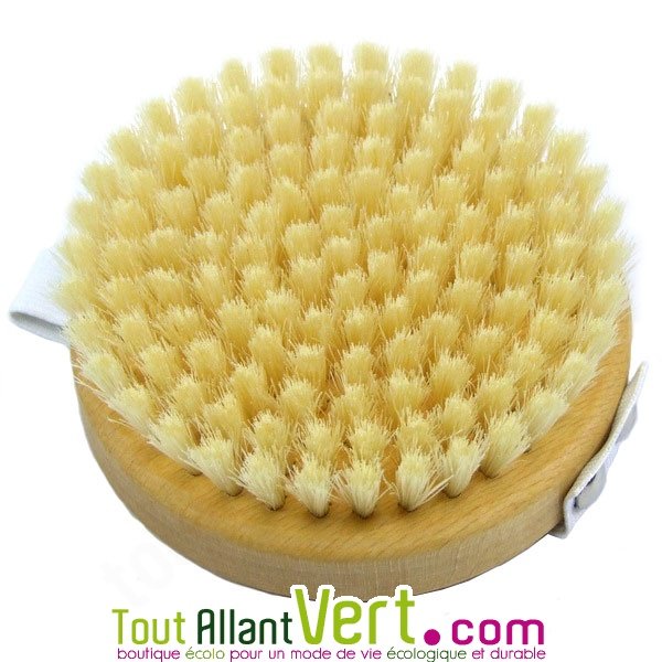 Une brosse ronde idéale pour les massages à sec. Les poils sont en soies naturelles. Munie d'une sangle élastique, sa taille de 10cm de diamètre permet une bonne prise en main. Fabriquée artisanalement en Allemagne.