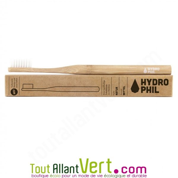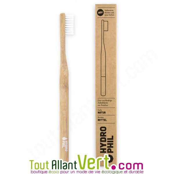 Brosse à dents durable en bambou, poils nylon medium, naturel, Hydrophil.- Le bambou est un agent antibactérien naturel