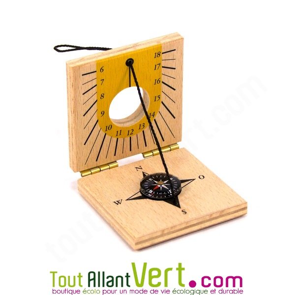 Le cadran solaire s'oriente vers le Sud grâce à la boussole pour connaître l'heure réelle du soleil. Un jeu de découverte amusant pour les jeunes aventuriers ! La boussole peut-être aussi utilisée indépendaemment pour apprendre à s'orienter.En bois et de petite taille, il se glisse dans la poche du pantalon pour l'emporter partout !