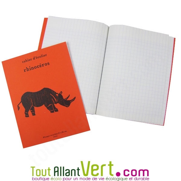 Cahier écolier recyclé 17x22cm, 48 p Rhinocéros