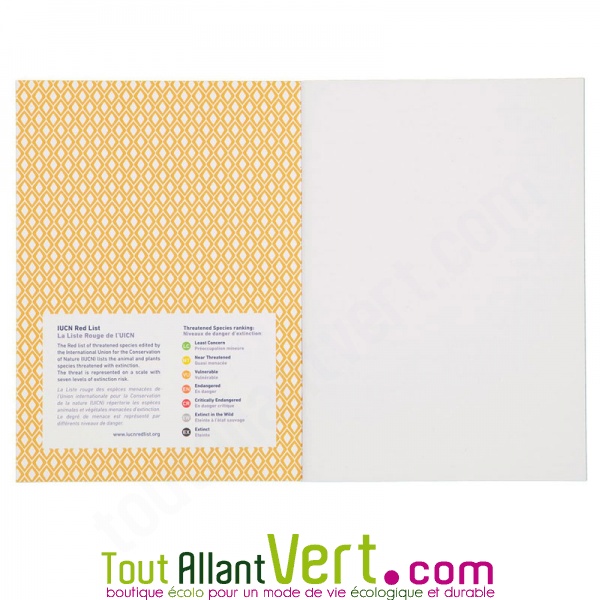 Joli cahier composé d'un page ligné au recto et blanche au verso. Motif Animaux de la jungle. Taille 15 x 21 cm. ligné. 48 pages environ. Papier fabriqué à partir de fibres recyclées. Fabriqué en Bretagne (France).