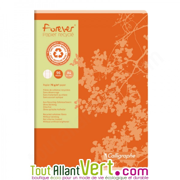 de ForeverCahier recyclé 21x29,7cm grands carreaux, 96p couverture Orange. Ce cahier 100% recyclé saura convenir à tous les besoins que ce soit au bureau, à l'école ou à la maison. Doté d'une jolie couverture colorée aux motifs nature, ce cahier a une blancheur naturelle : sans désencrage, sans chlore et sans azurant optique. ...Ce produit ne fait plus partie de notre catalogueCet article n'est plus disponible à la vente chez nous.Découvrez d'autres produits