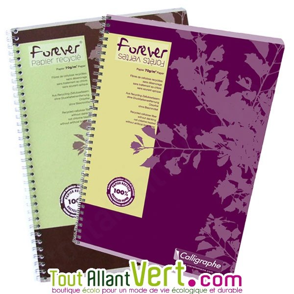 Cahier à spirale recyclé A4 petits carreaux Forever.Dotée d'une jolie couverture colorée aux motifs nature, cette gamme de cahiers 100% recyclé saura convenir à tous les besoins que ce soit au bureau, à l'école ou à la maison.