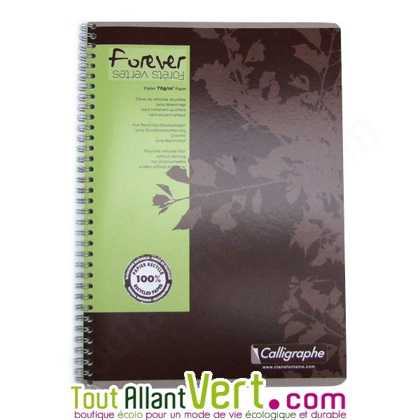 Le papier des cahiers Forever est fabriqué dans une usine certifiée ISO 9001 et 14001 : Cela implique un respect total de la législation environnementale en vigueur, ainsi que la réduction des impacts de consommation de l'eau, d'émission d'effluents et de bruit. C'est aussi un plan de gestion et de tri des déchets. Papier 100 % recyclé. Cette gamme de Clairefontaine utilise des papiers collectés et triés pour en faire un papier recyclé exceptionnel. Le but : respecter l'environnement avec des matériaux écologiques.