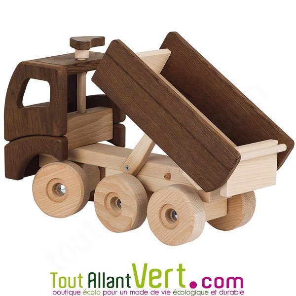 Camion-Benne en bois qui roule et déverse !- Les roues tournent et la benne se lève !