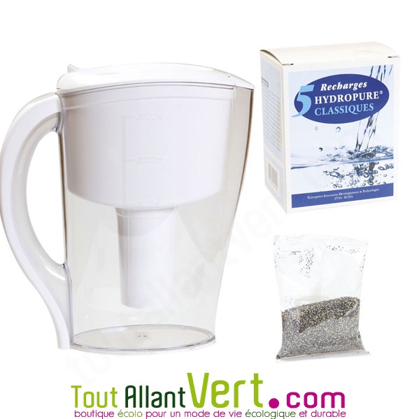 Carafe à eau filtrante à cartouche rechargeable + boite 5 recharges classiques