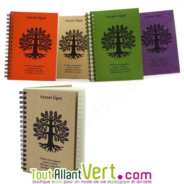 Petit carnet à spirale, ligné, 120 pages recyclées.Les pages sont de couleur ivoire, lignées avec une marge verte. La couverture est en carton épais pour plus de rigidité (coloris au choix)