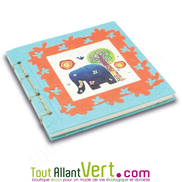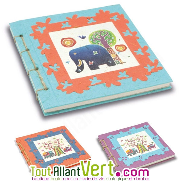 Carnet relié 17x17cm, fabriqué en papier de bouses d'éléphant
