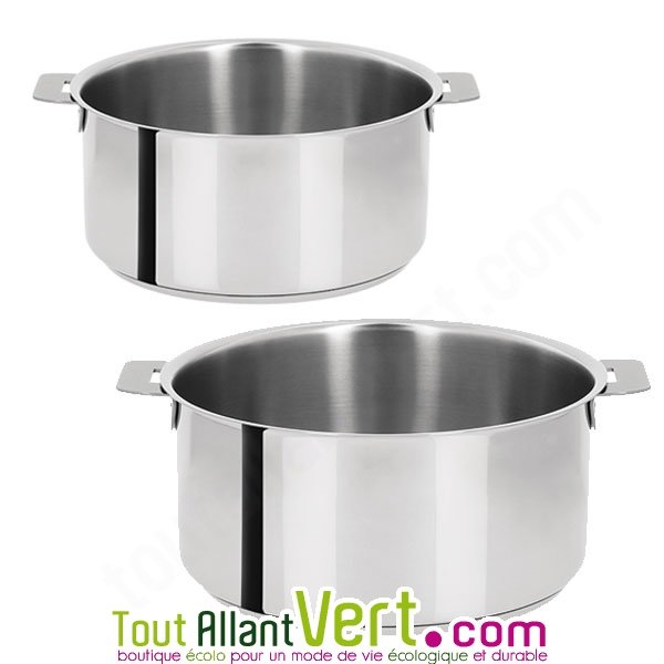 Casserole inox 18/10 avec anses de haute qualité. Compatibles tous feux, même induction, ces casseroles passent au four, grill et lave-vaisselle. Empilables, finition brillant effet miroir et poignée amovible (vendue séparément). Taille au choix : 16, 18 et 20cm. Fabriquées en France.