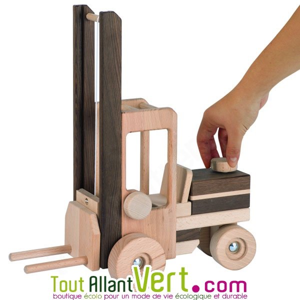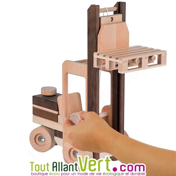 Chariot élévateur en bois naturel, 38cm, 3 ans+