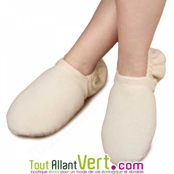- Chaussons en micro-éponge velours ultra-douce 100% coton certifié bio, garnissage en graines de lin des Flandres à la fois dans la semelle et sur l'avant-pied