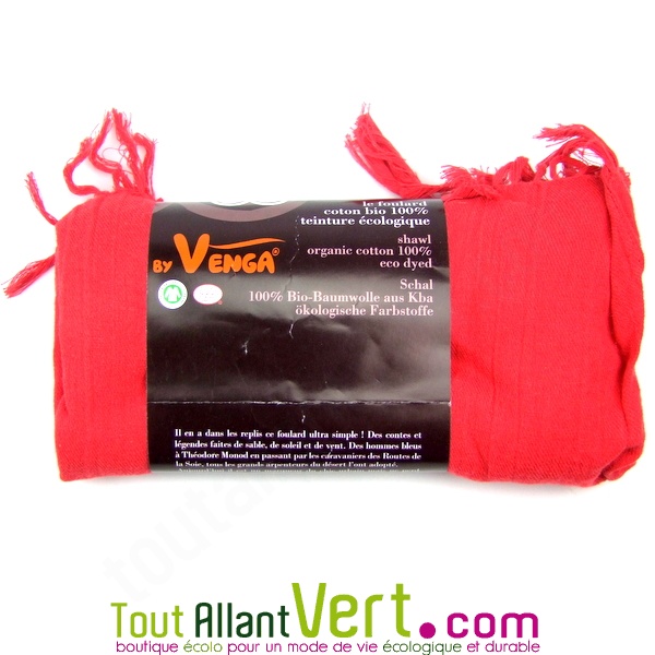 Chèche en coton bio, teinture écologique, Rouge- Elégant, intemporel, pratique et confortable